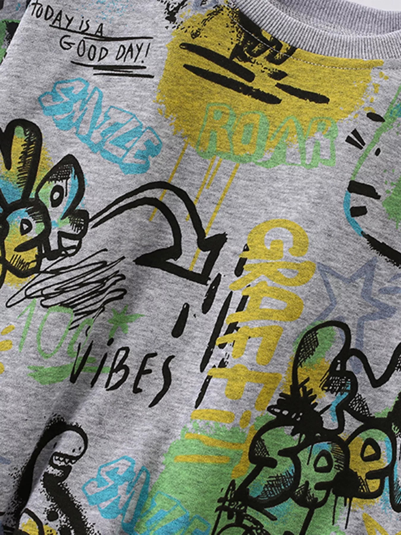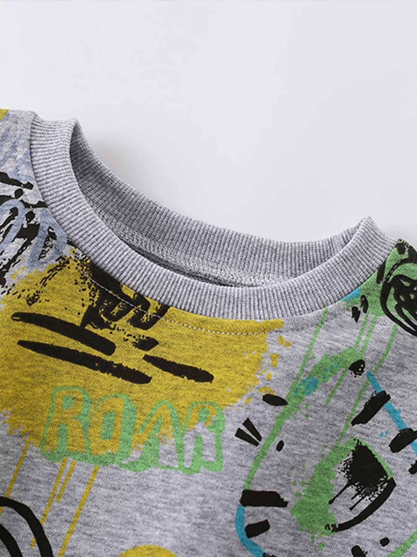 Children's Cartoon Graffiti Print Crew Neck Sweatshirt