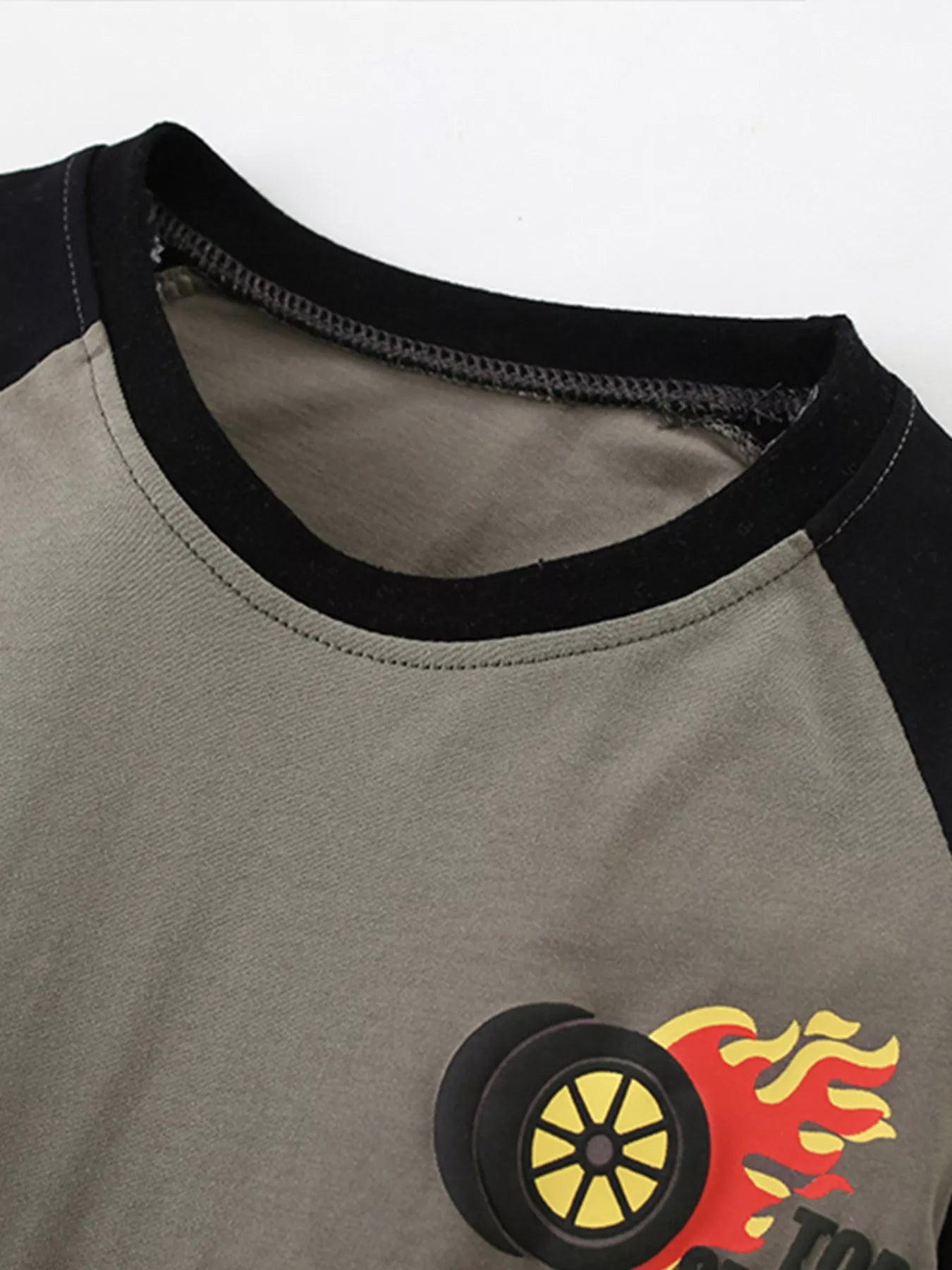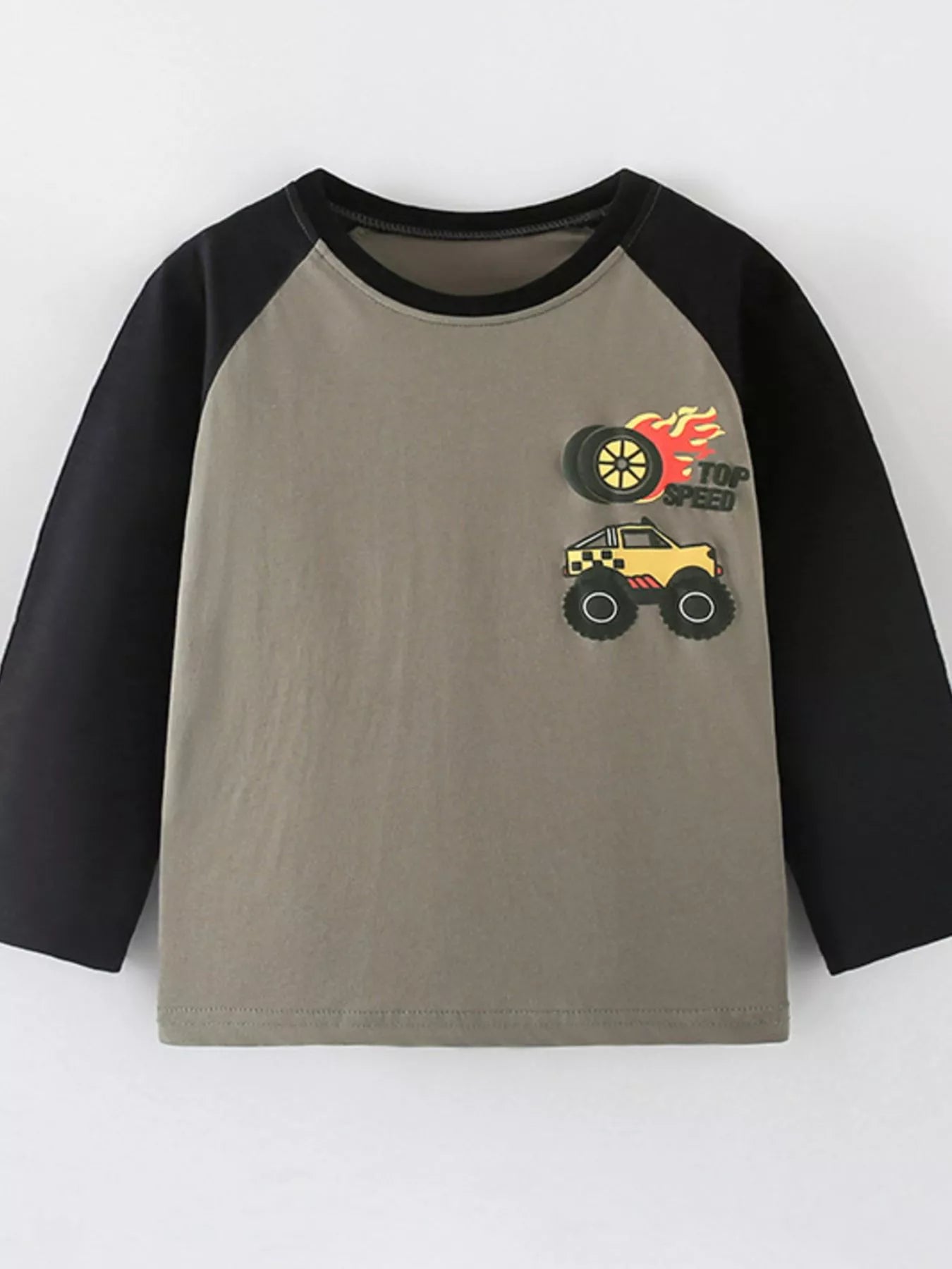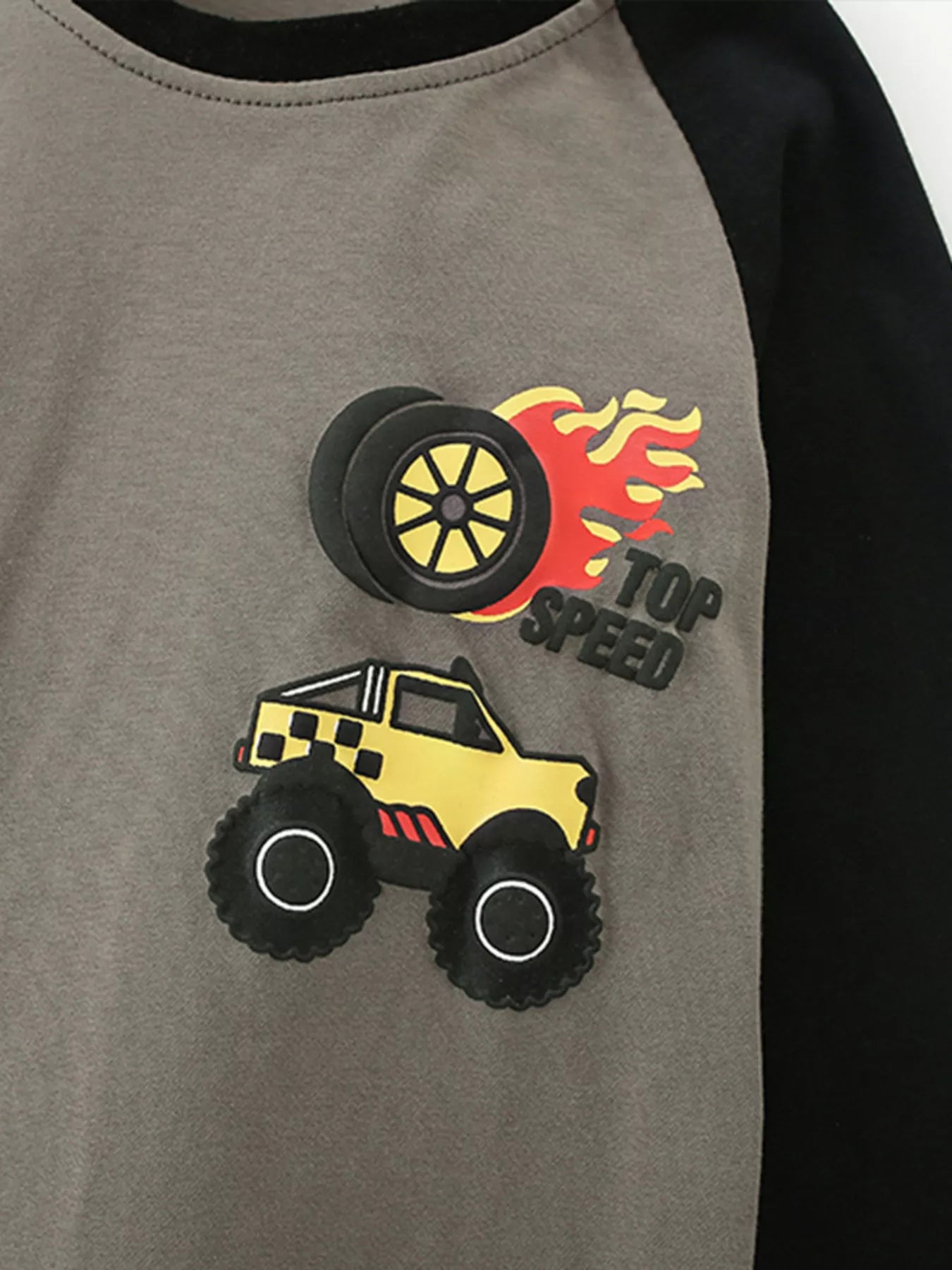 Children's Cartoon Monster Truck Graphic Raglan Sleeve T-Shirt