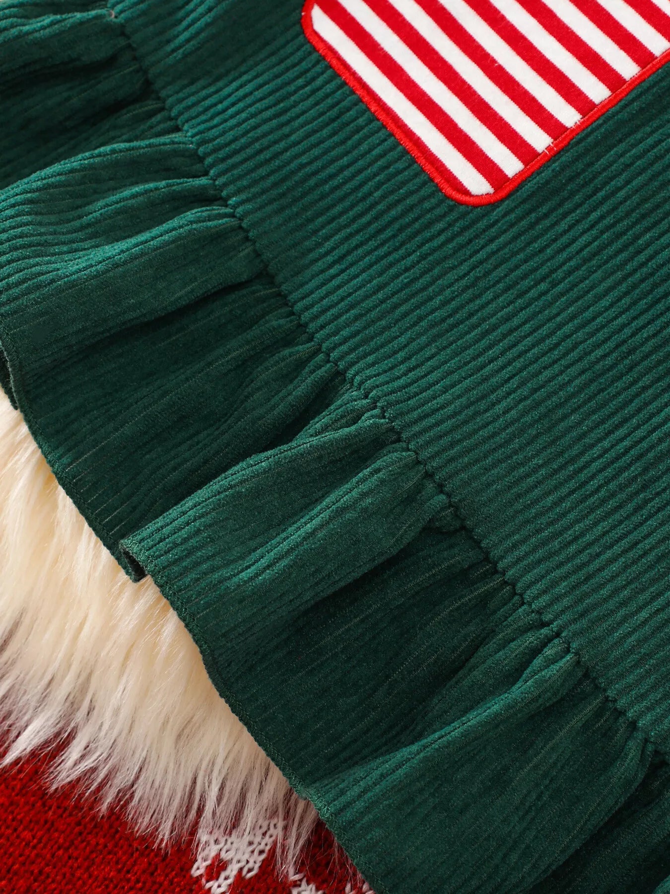 Children's Christmas Striped Bodysuit and Dress Set with Headband