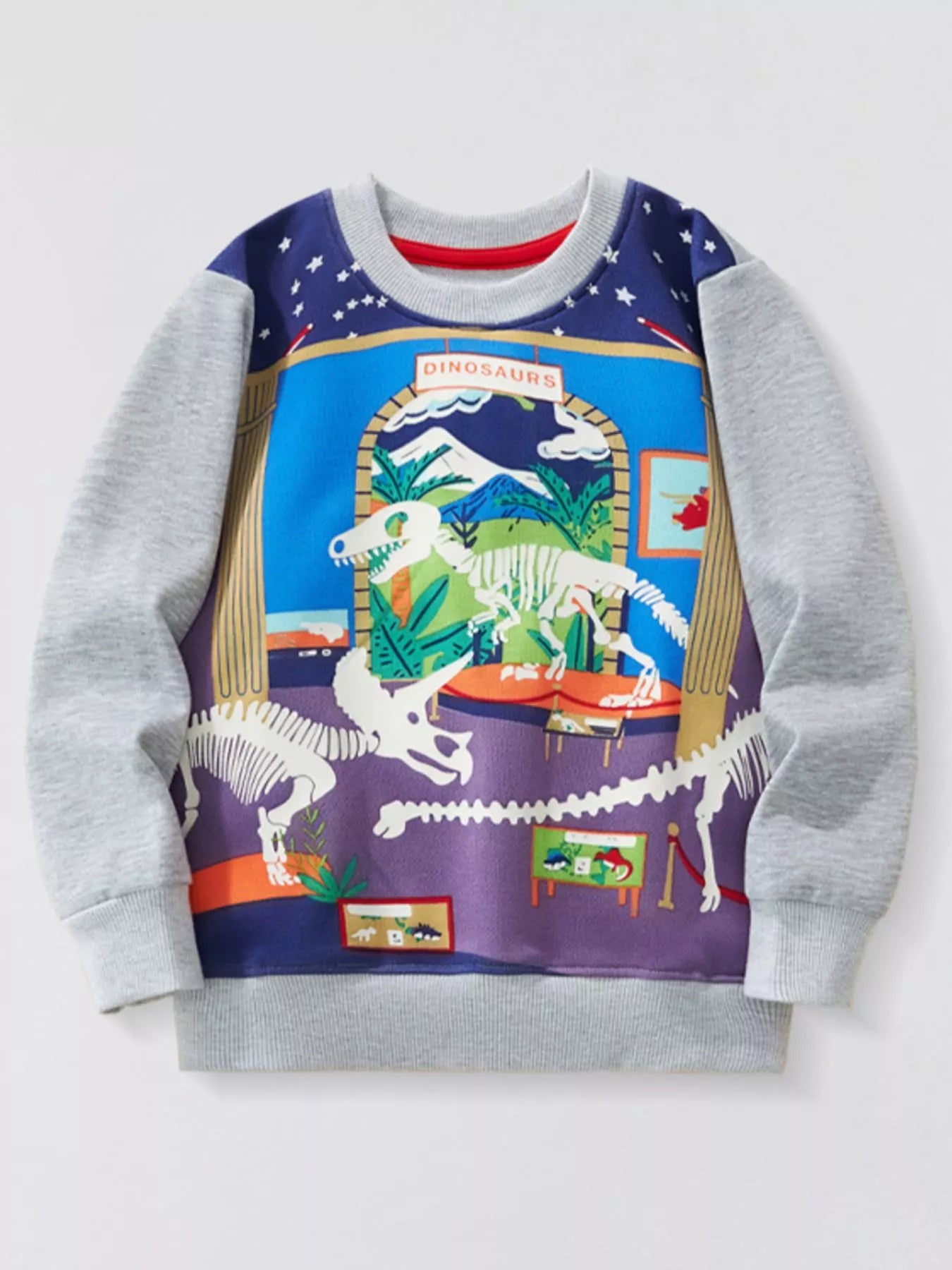 Children's Dinosaur Museum Graphic Crew Neck Sweatshirt