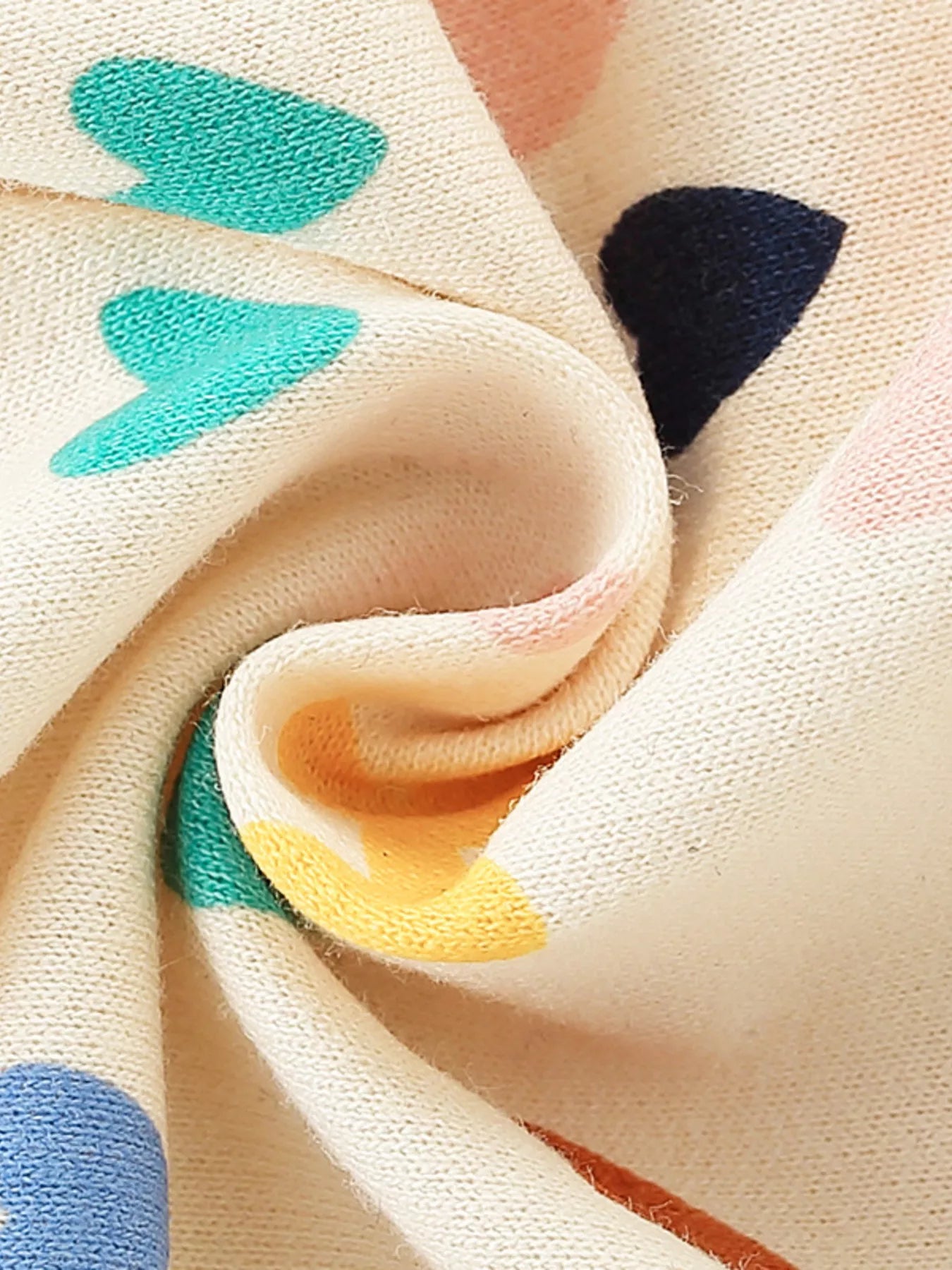 Children's Heart Print Ruffle Hem Long Sleeve Top