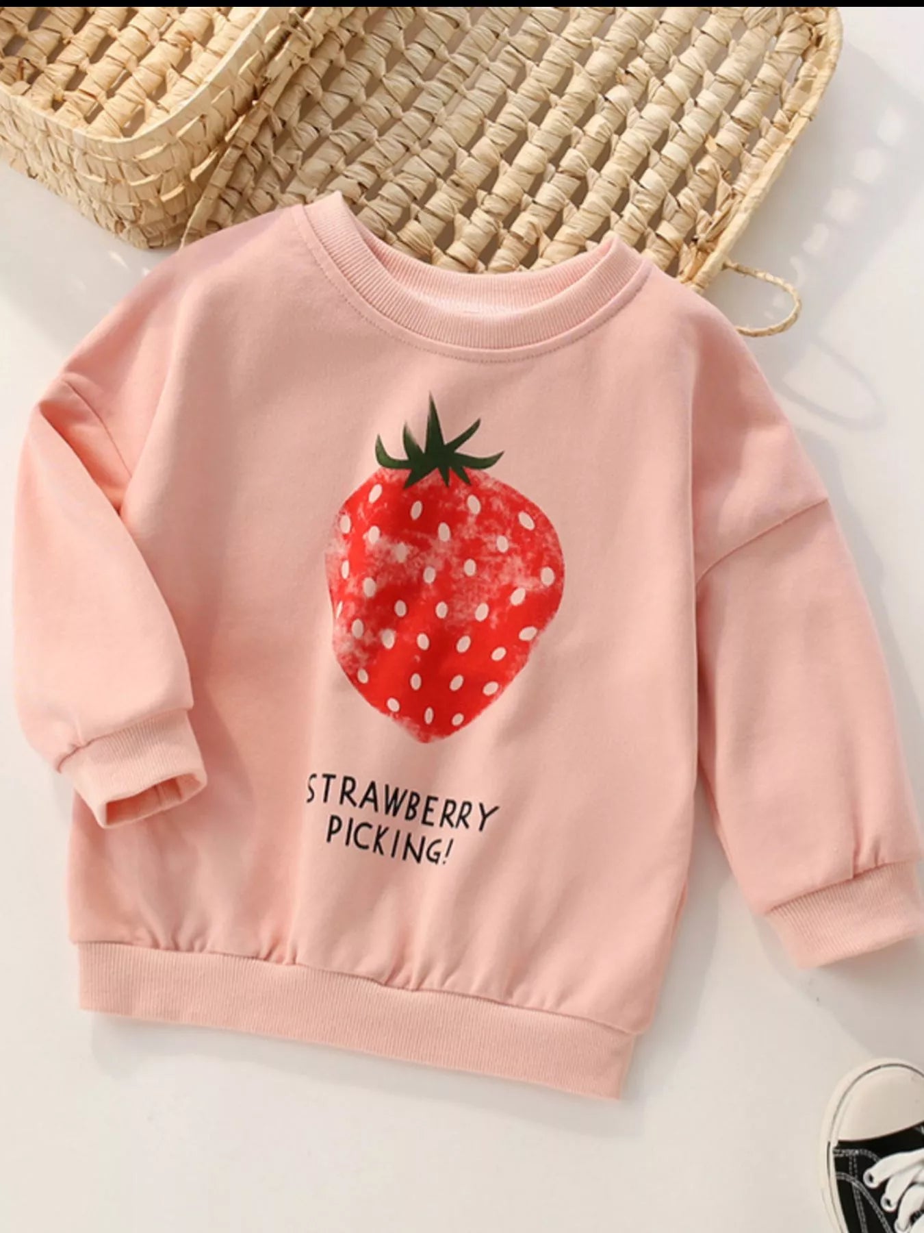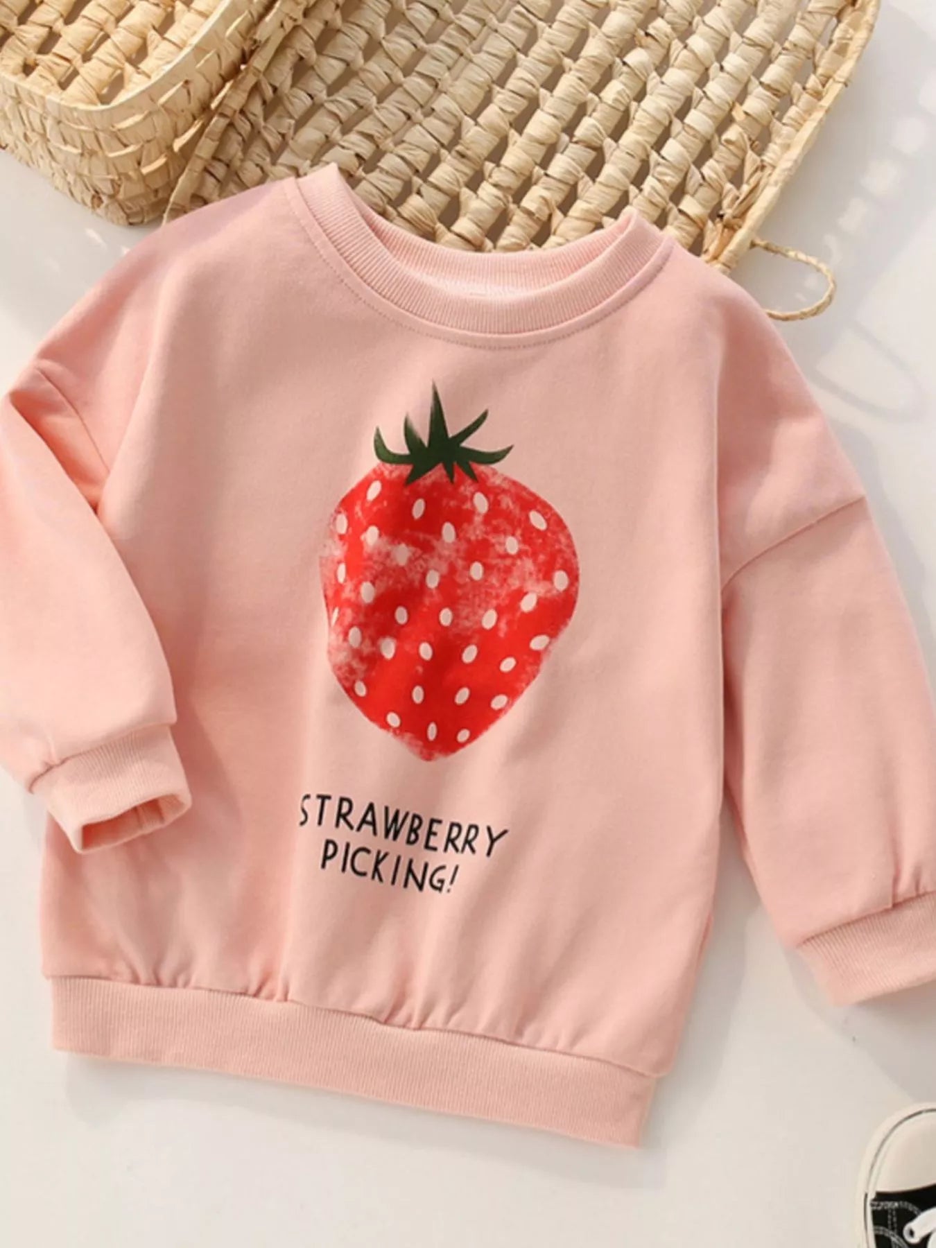 Children's Strawberry Picking Graphic Crew Neck Sweatshirt