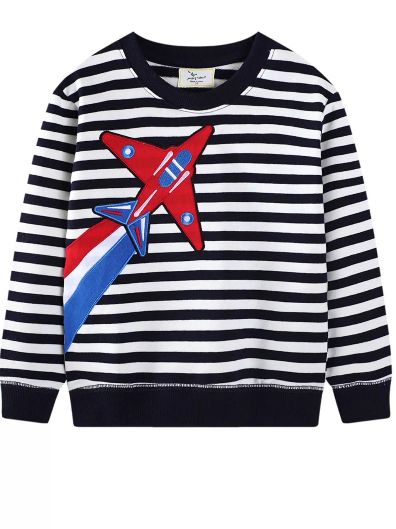 Children's Striped Airplane Applique Crewneck Sweatshirt