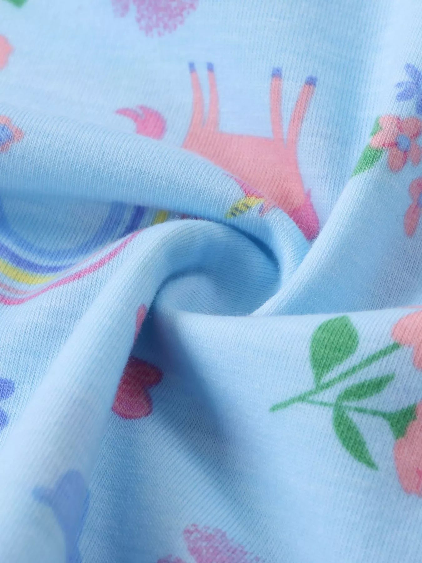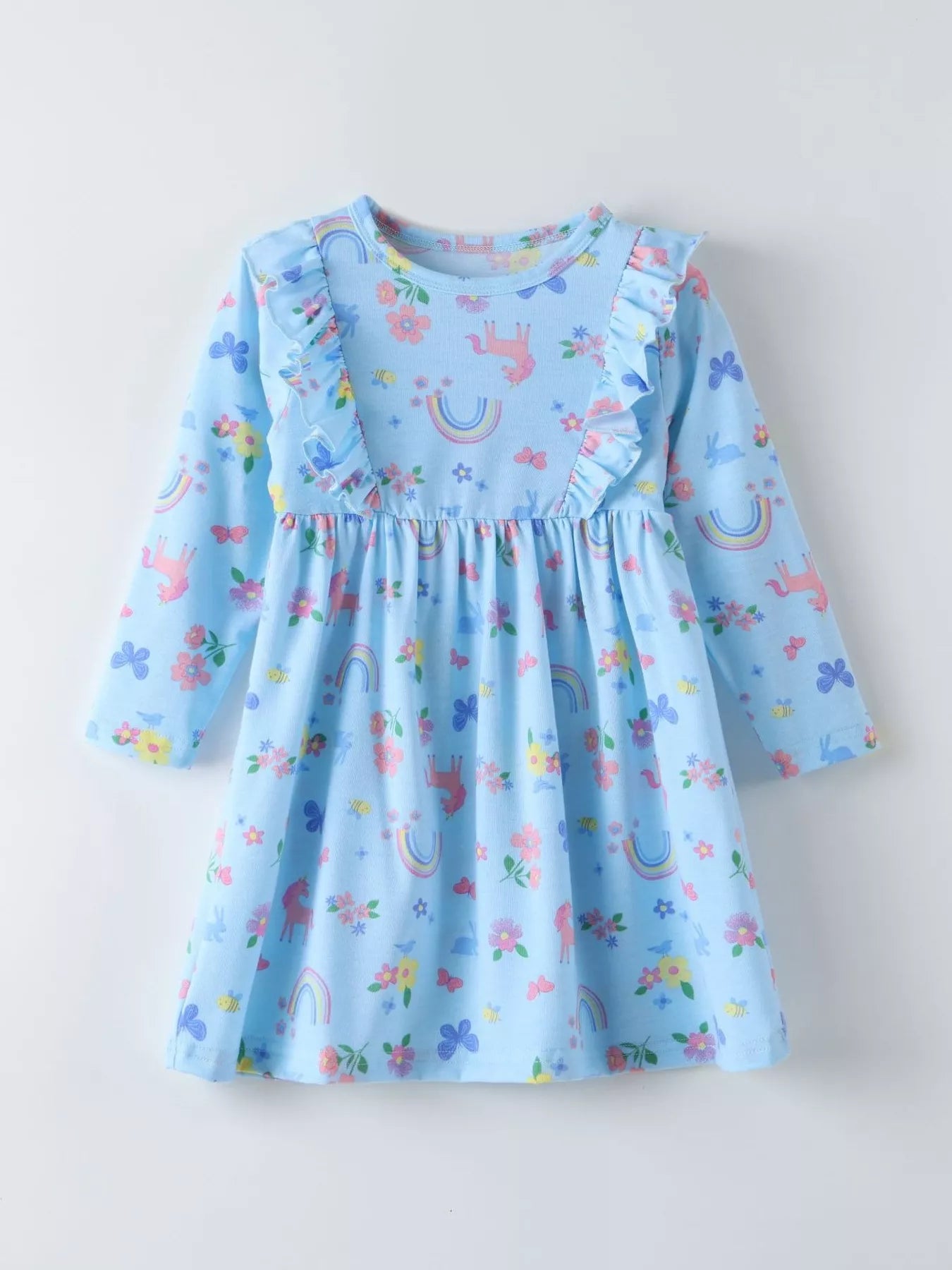 Children's Unicorn Rainbow Print Ruffle Trim Long Sleeve Dress