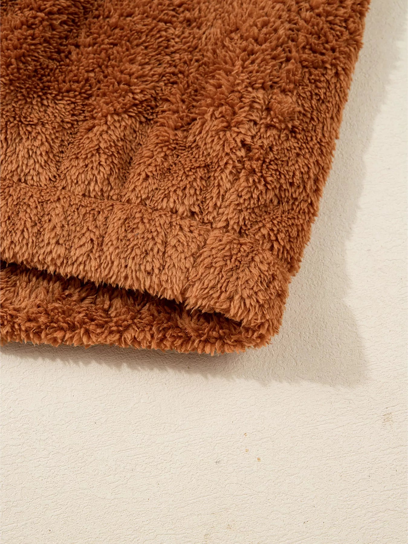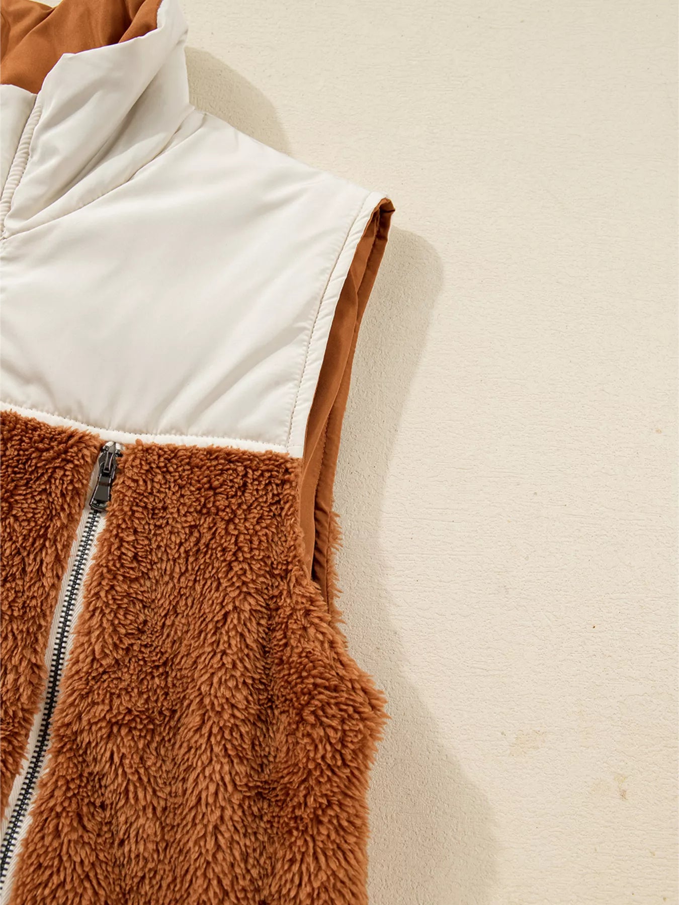 Color Block Plush Patchwork Zipper Stand Neck Vest Coat