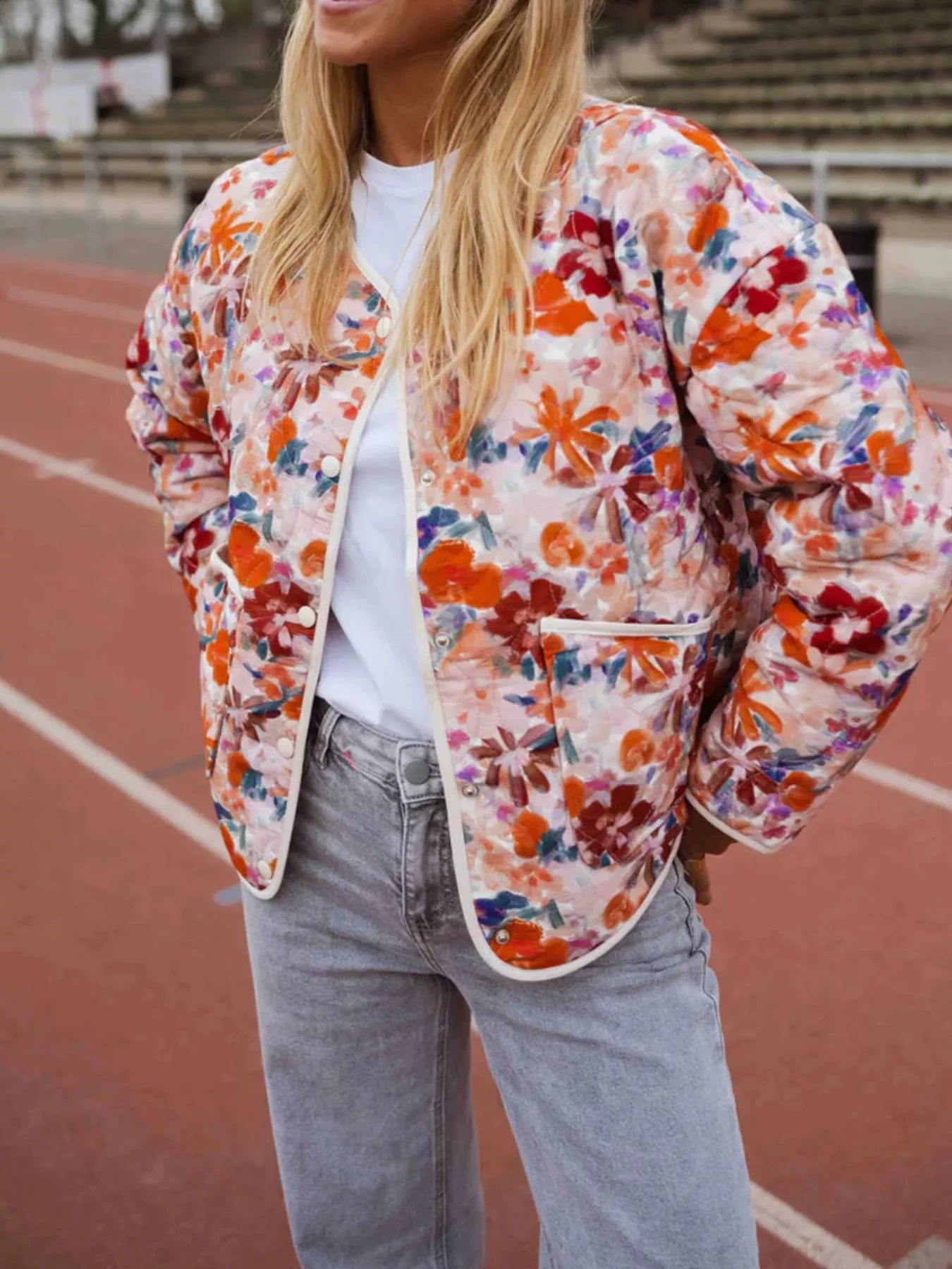 Floral Print Quilted Lightweight Outerwear