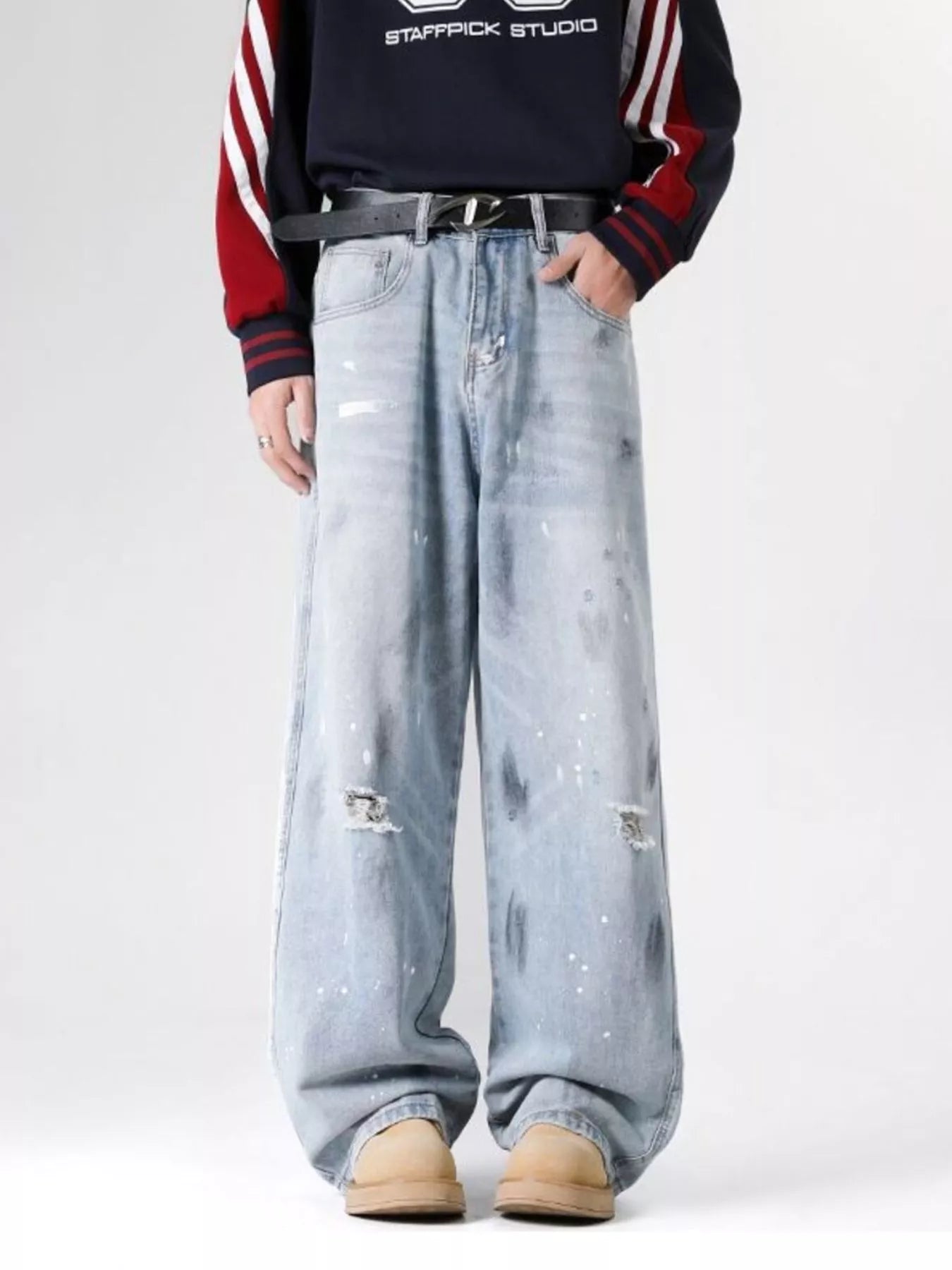 Men's Full Size Distressed Wide Leg Jeans Plus Size