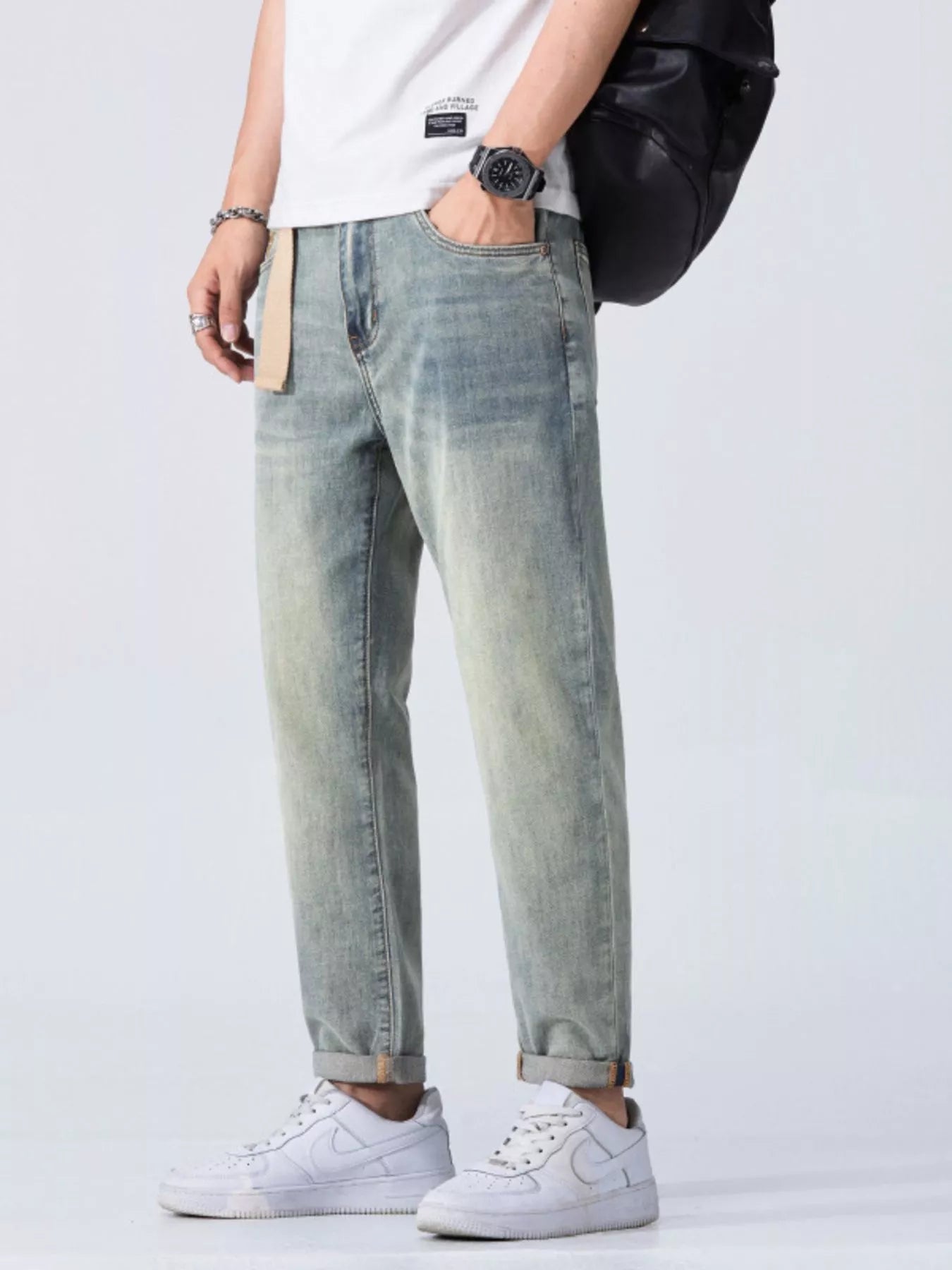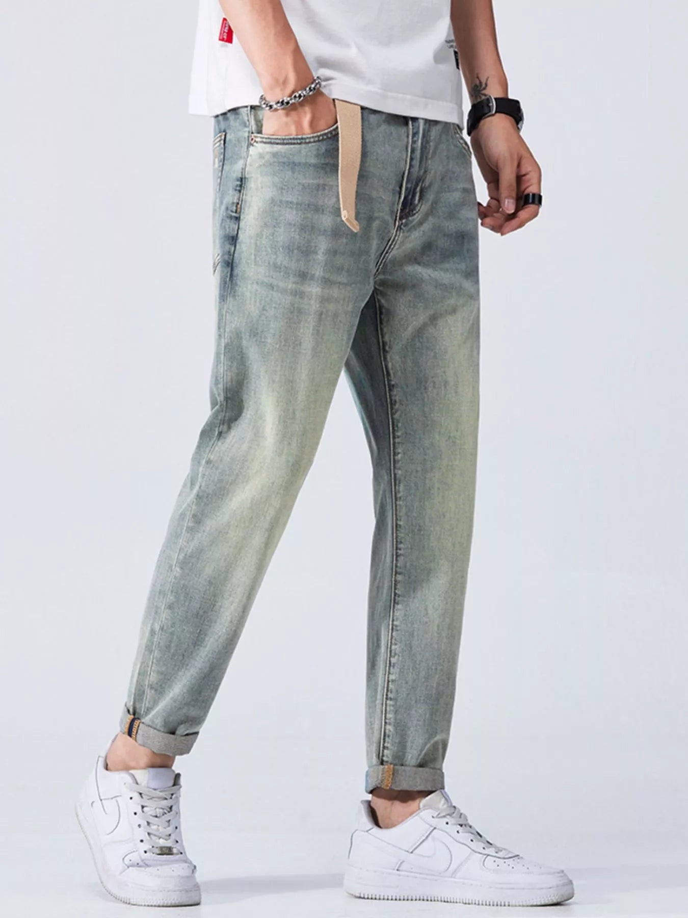 Men's Vintage Wash Cropped Jeans