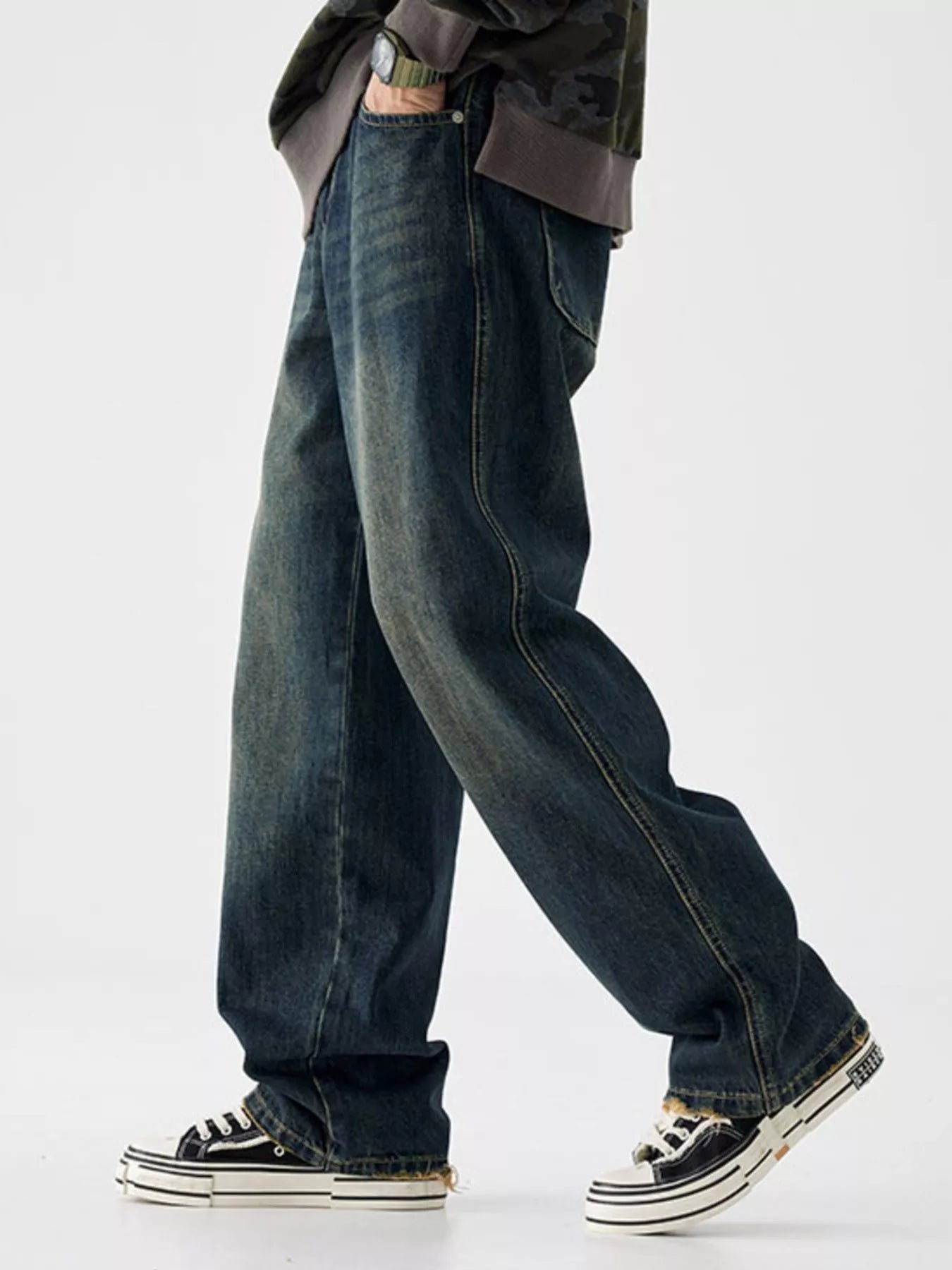 Men's Vintage Wash Wide Leg Jeans