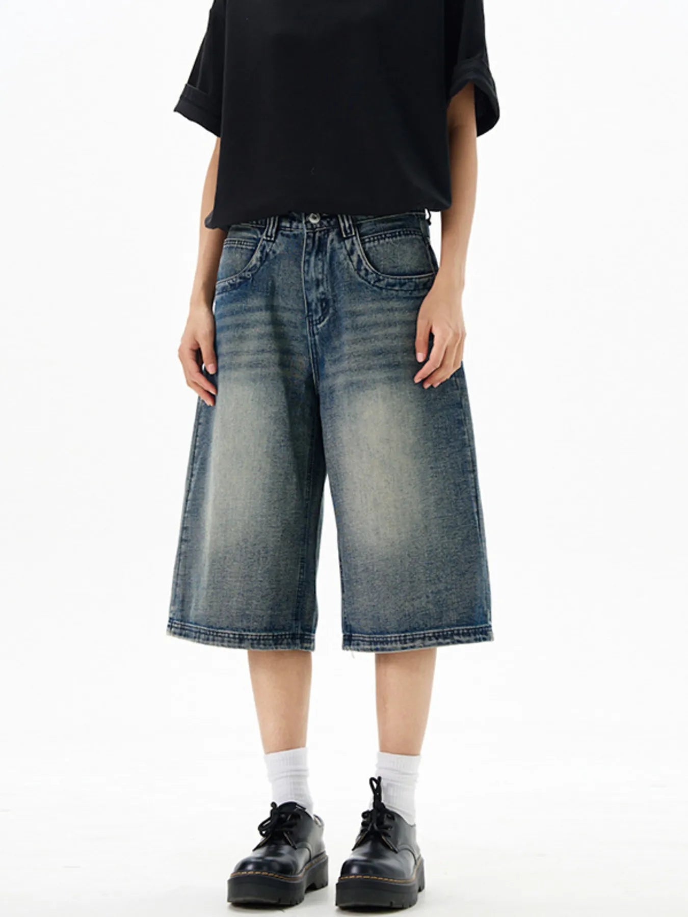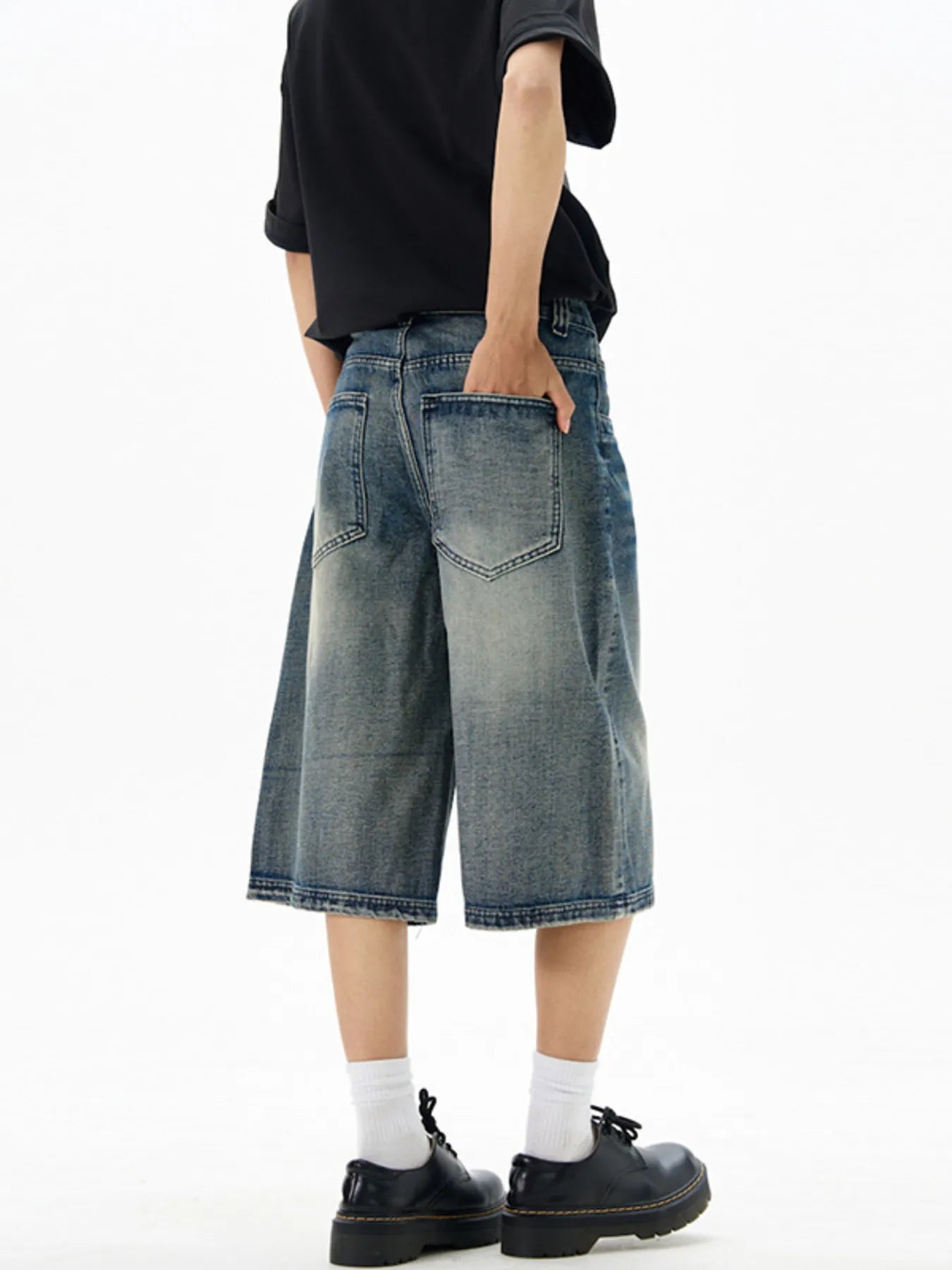 Men's Wash Wide-Leg Denim Shorts