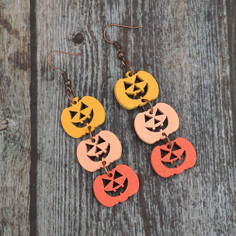 Wooden Contrast Pumpkin Earrings